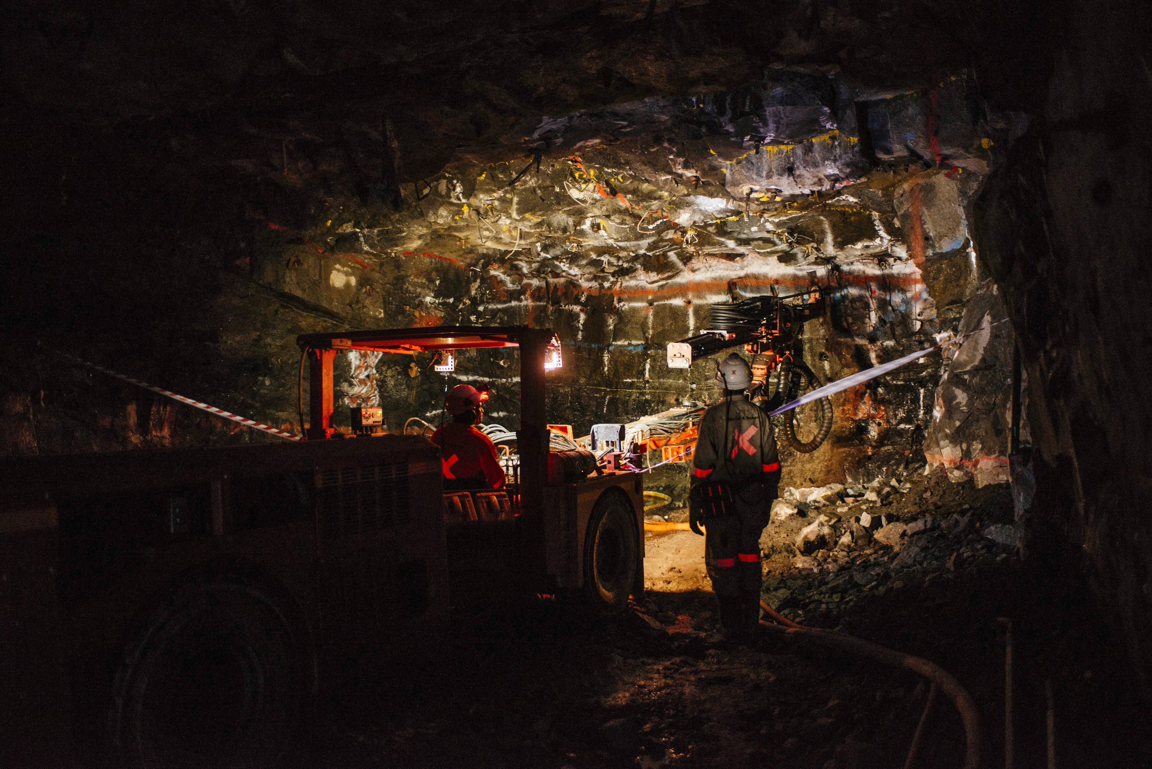 A mining vehicle illuminates the rock face inside the Northam Platinum Ltd. Booysendal platinum mine, located outside the town of Lydenburg in Mpumalanga, South Africa, on Tuesday, Jan. 23, 2018. Booysendal will use a system developed by an Austrian company that builds ski lifts to transport the ore up a 30 degree incline out of a valley for processing, instead of the traditional conveyer used throughout South Africa or the more expensive option of trucking. Photographer: Waldo Swiegers/Bloomberg