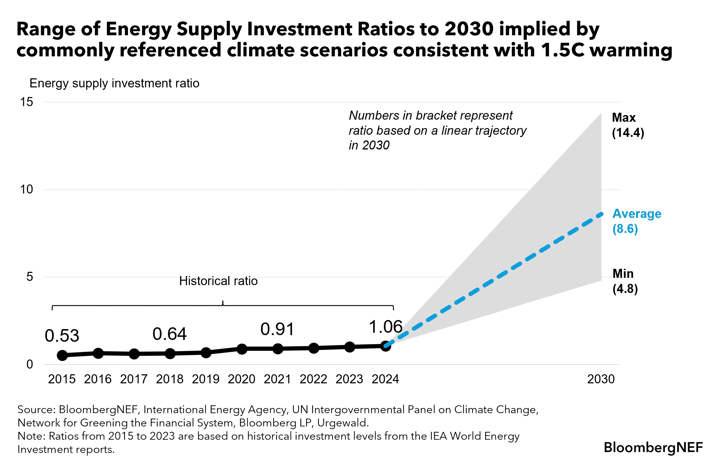 - The consolidated global ratio was 0.48 to 1 as of June 2024, for pooled investment vehicles based on available data, below the current 1.1 to 1 economy-wide investment in energy supply and the 4.8 to 1 ratio required by 2030 under 1.5-degree climate scenarios.