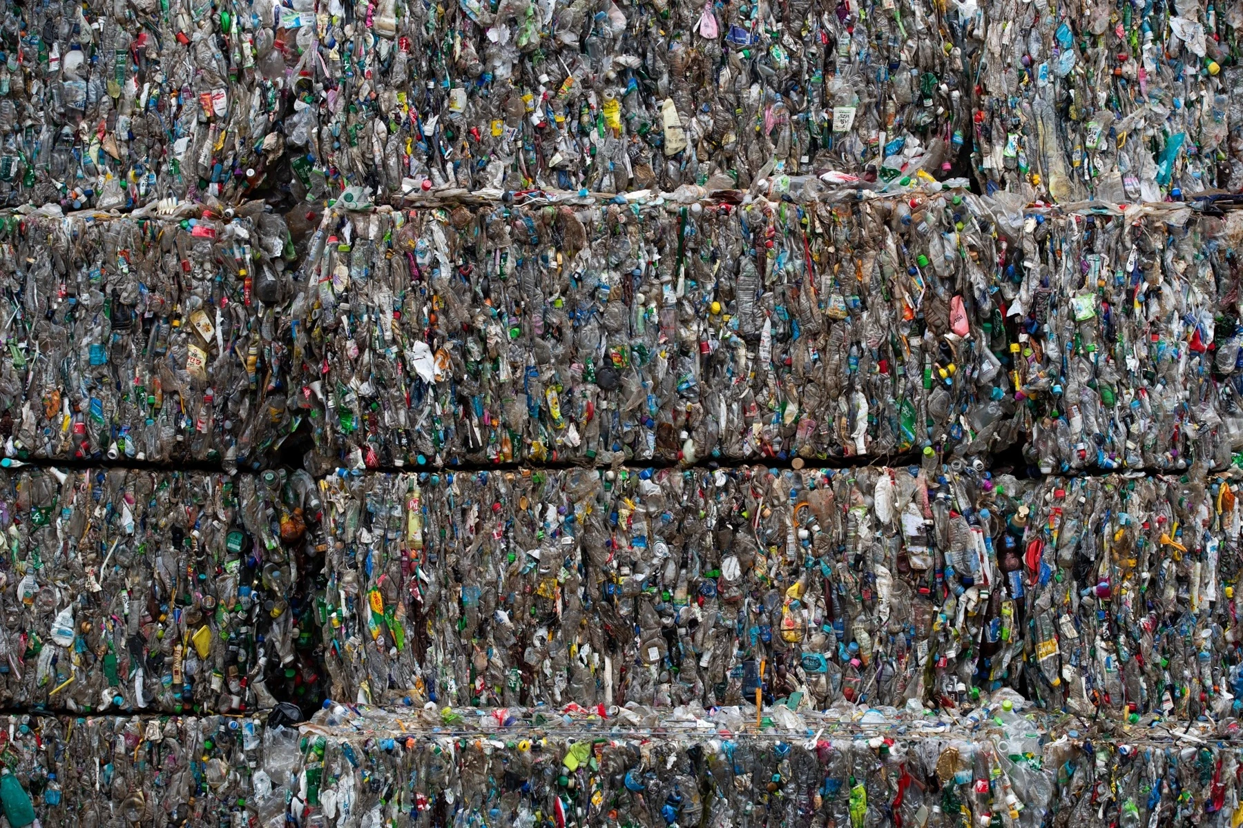 Crushed plastic bottles and containers are stacked at Yongin Recycling Center in Yongin, South Korea, on Monday, Sept. 14, 2020. The coronavirus is undermining global efforts to ease plastic pollution, with lockdown measures curbing recycling activity in South and Southeast Asia, according to a report commissioned by Circulate Capital LLC. Photographer: SeongJoon Cho/Bloomberg