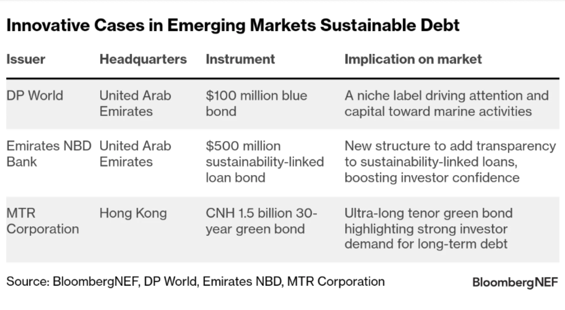 Issuer innovation and regulatory support can help grow sustainable debt in emerging markets, a critical tool to address the multi-trillion-dollar climate financing gap, according to a new BloombergNEF (BNEF) report, Scaling Sustainable Debt in Emerging Markets.